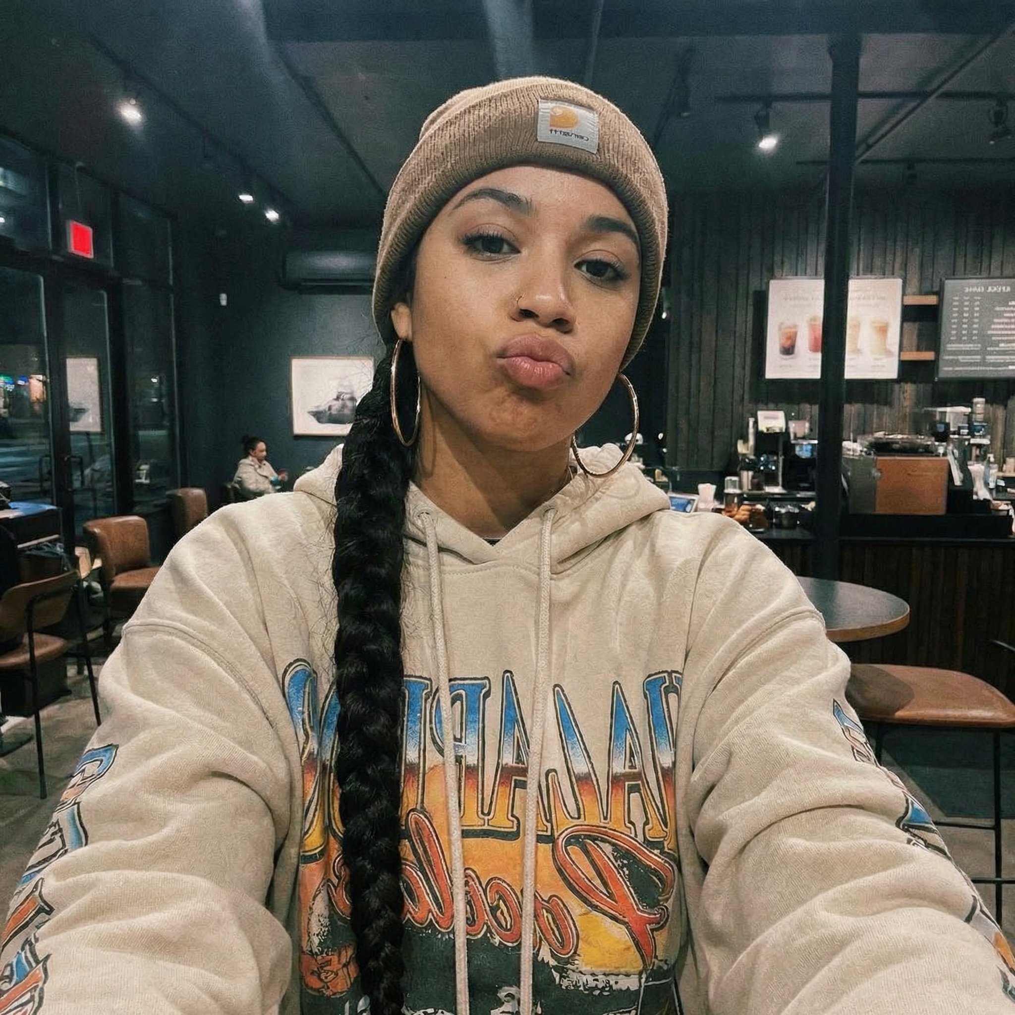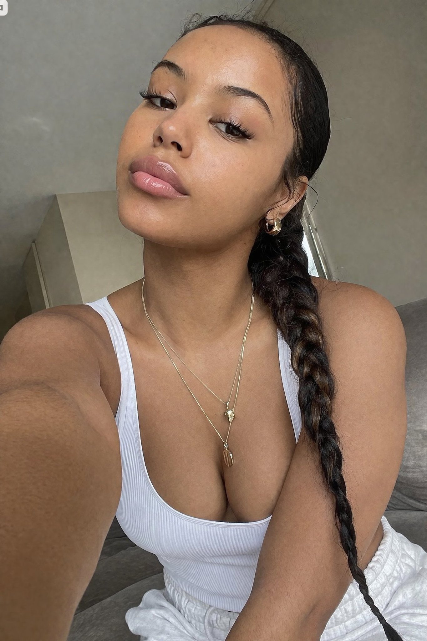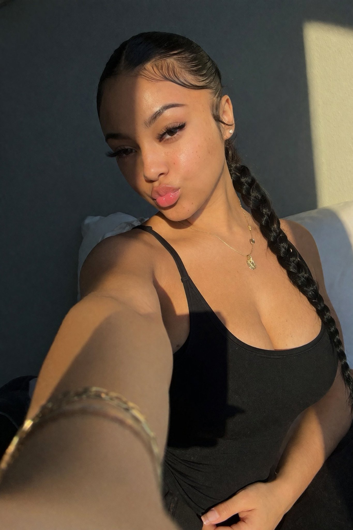 candid selfie of a girl with a braided ponytail falling over her shoulder